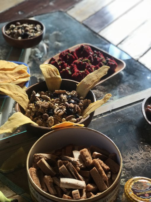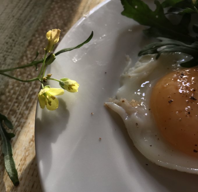 Аристократический завтрак с цветами рукколы. Собственного приготовления шоколад с вишней. Кстати, шоколад с сахаром по калорийности будет меньше, чем шоколад без сахара. Потому что в Сахаре 300 калорий на 100 грамм, а в тертом какао и какао масле больше 600 🫤А я раньше делала только без сахара, и считала, что это лучше 😂