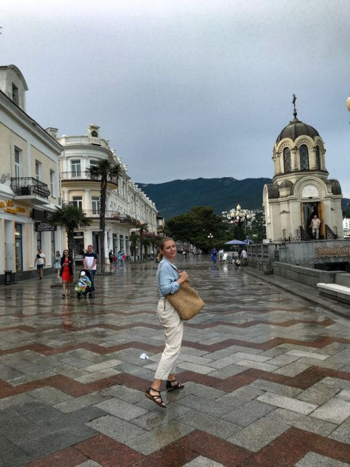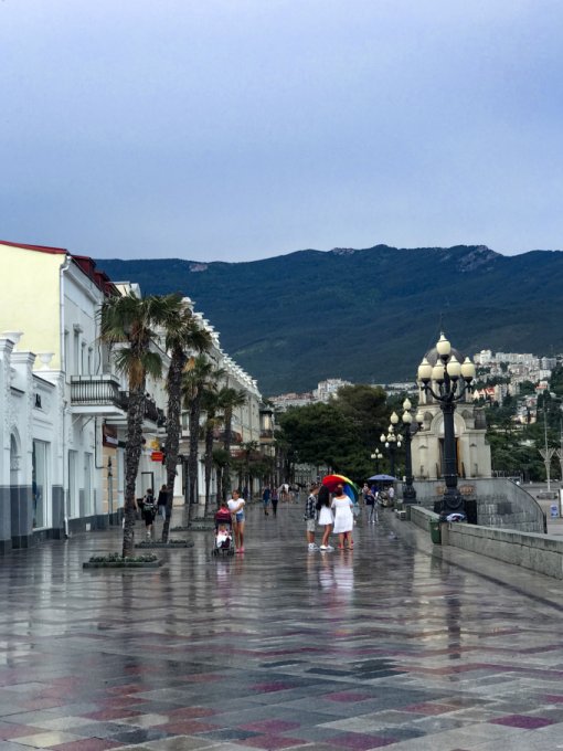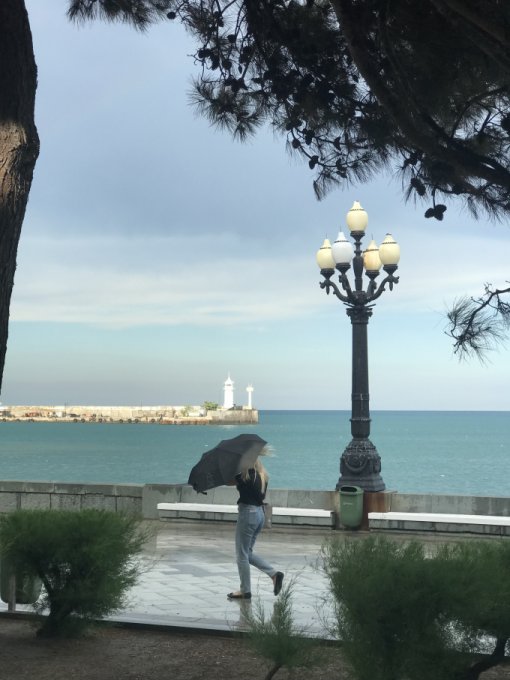 А после обеда поехали в Ялту. Застали сильный ливень, простояли его в пробках. Я, правда, выбегала по магазинам. Потом пошли гулять по набережной. Людей было мало, это отдельный кайф для летней Ялты.