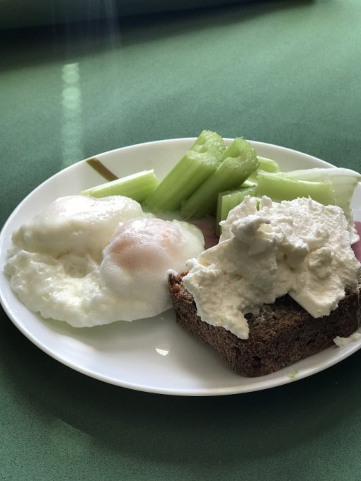 Очень много работы и мало сна было два дня. Не переедала, но баланс нарушен. Сегодня много белка. Надо придумать, что с этим делать.
