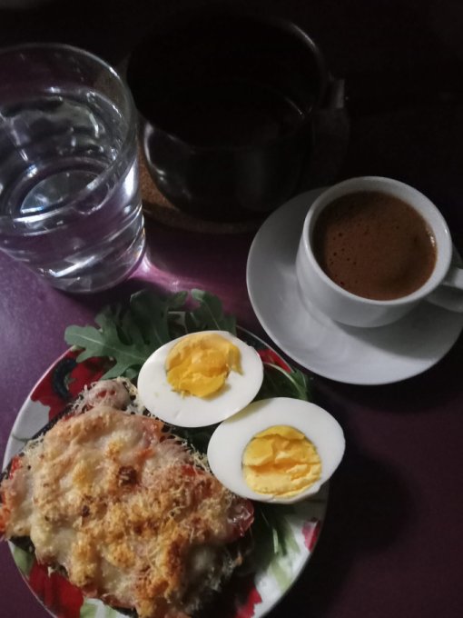 семенами льна. На второй завтрак кофе и все-таки тост с овощами,