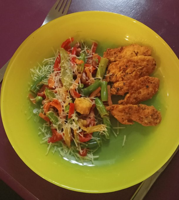 яйцом и пармезаном. На перекус кусочки ананаса. А ужином стало филе