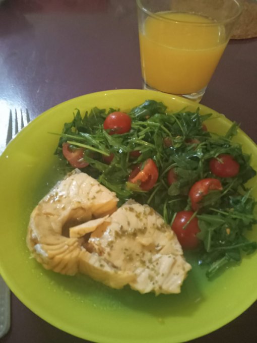 (запечена в пакете), салат (руккола, черри, половинка чайной ложки