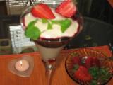 Замороженный банан разморозить, но не до конца. Взбить в блендере в пюре. Чернику смешать с медом. Выложить часть банановой массы в креманку, затем сделать слой из черники, покрыть бананом. Сверху выложить клубнику и украсить мятой. Прекрасный диетический десерт готов!!!