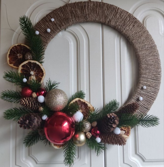 Пару дней назад решила сделать рождественский венок, но дома были шары только красного. Вот что вышло