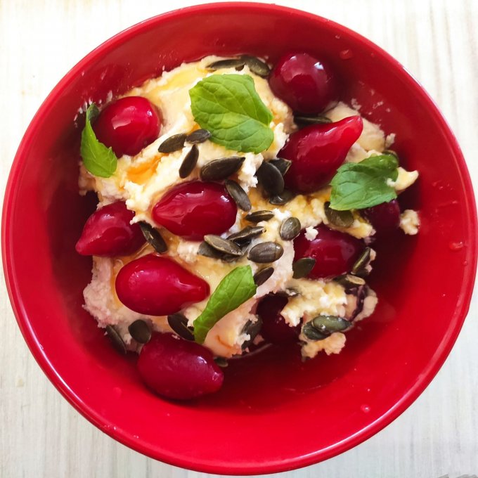 ягодами и сиропом без сахара. Можно кусок индейки запеченной.