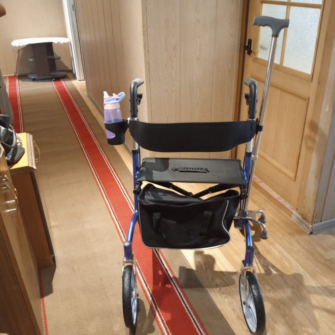 Сегодня получила новые роллаторы! У них колеса больше, чем у моих старых и выходят вперед больше, что хорошо. Я счастлива. Они легкие!!! Спинка регулируется (у старых не регулировалась. Сумка, что идет в комплекте нормально крепится к раме спереди. С одной стороны есть подстаканник, со второй - держатель для палки или трости 😍 Ручки прорезиненные, держаться удобнее. В июле буду заказывать коляску еще