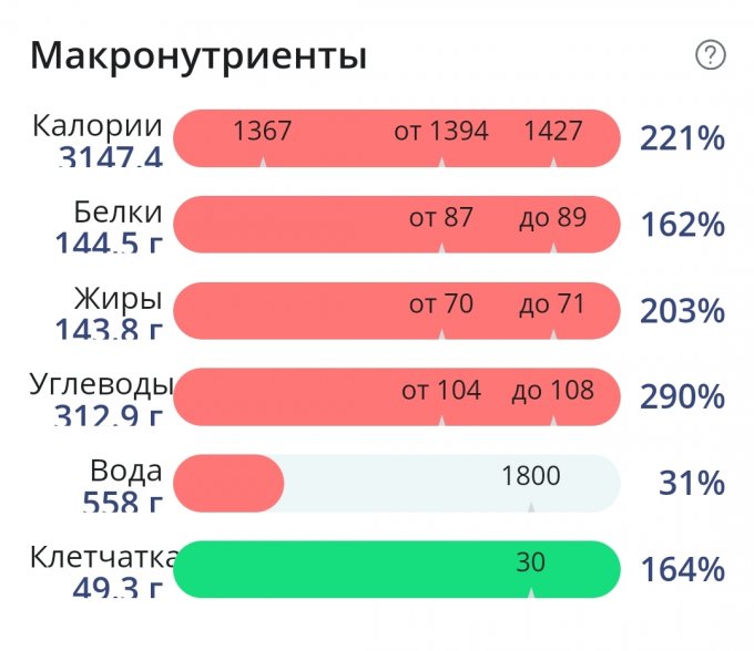 | Итого за день | 1184 | 1400 | 89 | 67 | 106 |