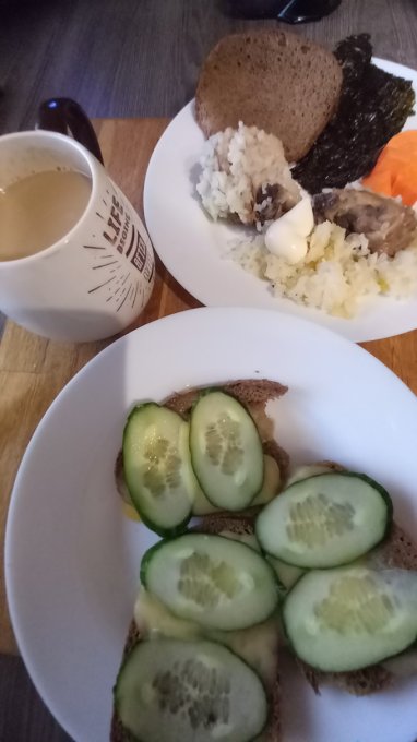 Рис. Окорочок. Бутерброды с сыром и огурцом