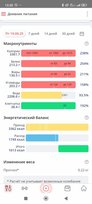 | Итого за день | 1624 | 824 | 25 | 20 | 131 |