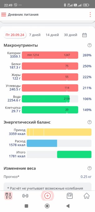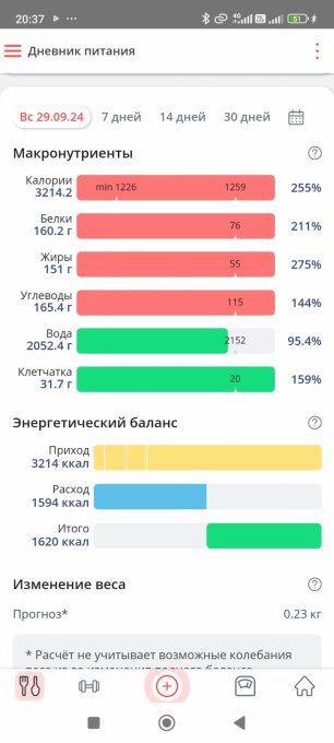 | Итого за день | 2643 | 1440 | 124 | 50 | 116 |