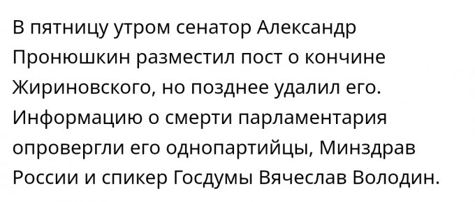 Сегодня, 6 апреля действительно умер Жириновский на 76-ом году