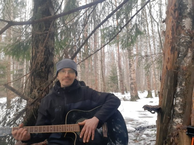 Сегодня с утра пораньше выдвинулся к своему лесному шалашу, устроил пикник с костерком, песнями под гитару и яишницей с луком. Вообщем радостно!:)