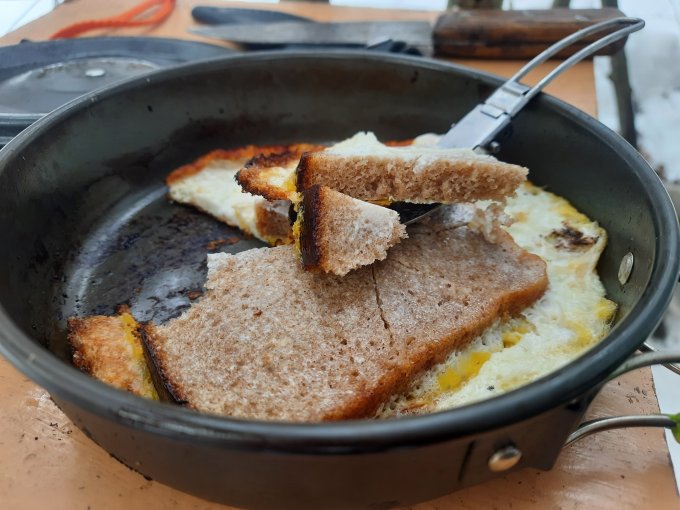 Другие фото с весеннего похода в начале марта. Попел песен под гитару я конечно во славу...а яичница на сковородке согрело озябшее тело. В лесу было около -2.