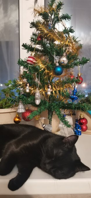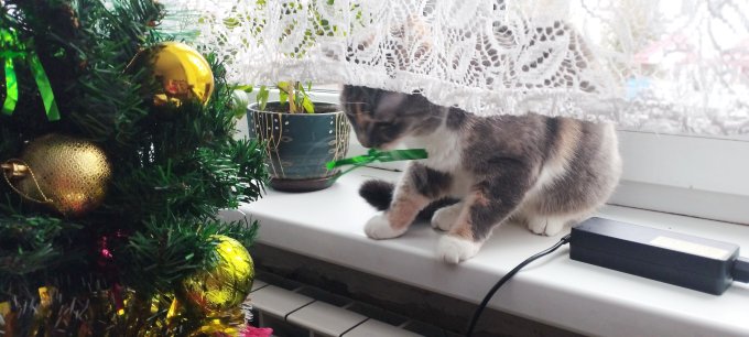 но вот ëлка стоит уже сутки, и на удивление её пока никто не пытается съесть и уронить