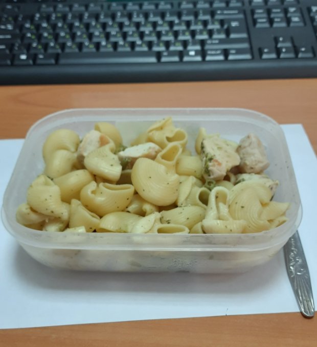 ведро макарон и курицы, потому что пытаюсь массу набрать