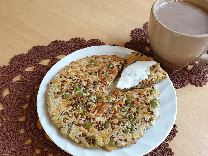 А сегодня утром я готовила себе на завтрак, шикарный, вкусный овсяноблин по рецепту ГалиныЯ, с добавлением своих ингредиентов.