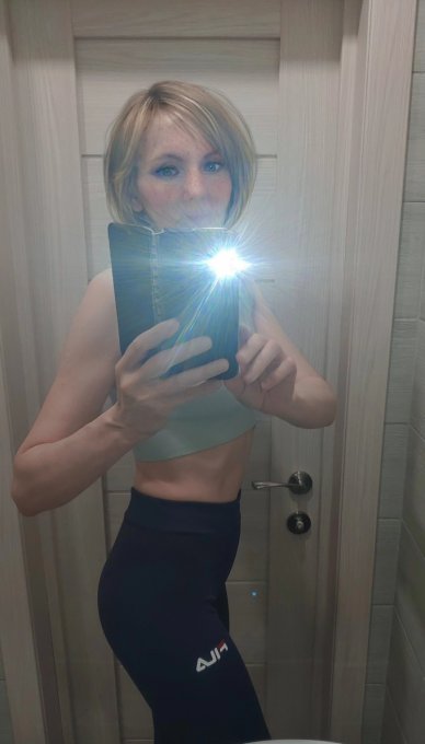 Теперь вот жалею, что не купила "умные "весы. Там наверняка у меня меняется состав тела, уменьшается жирок.. На фото я, ещё небольшая прослойка жира осталась, есть чего сжечь в тренажерке 😁💪.