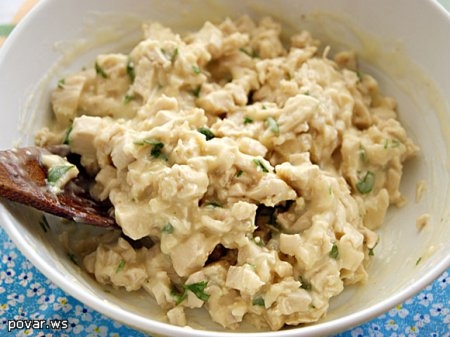 начинки из яиц и лука. Затем между ладонями разделать продолговатые