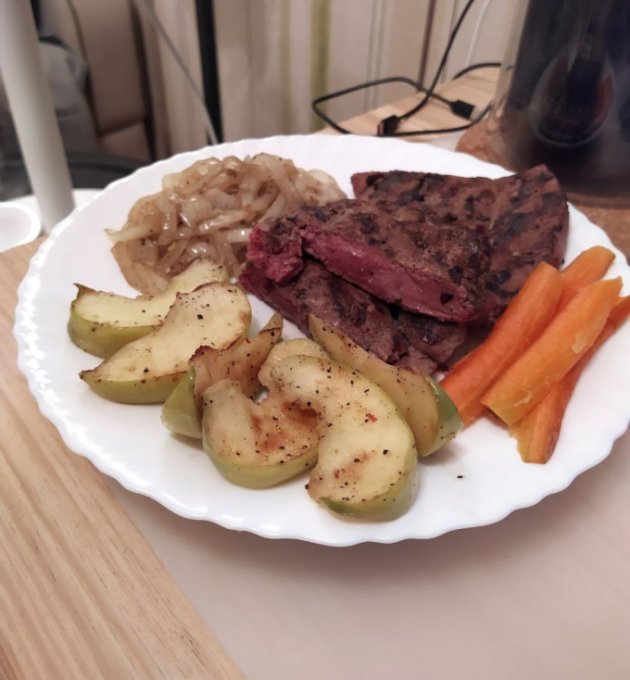 Стейк из телячьей печени с поджаренными яблоками)