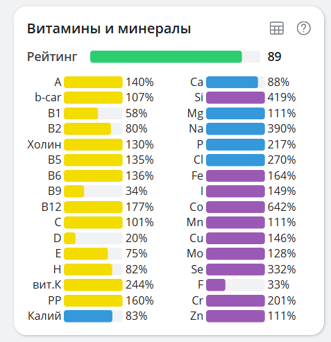 | Кол-во | Калории | Белки | Жиры | Углеводы | |