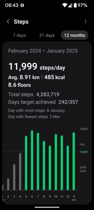 рекорд прошлого года по шагам. Будет меня мотивировать двигаться