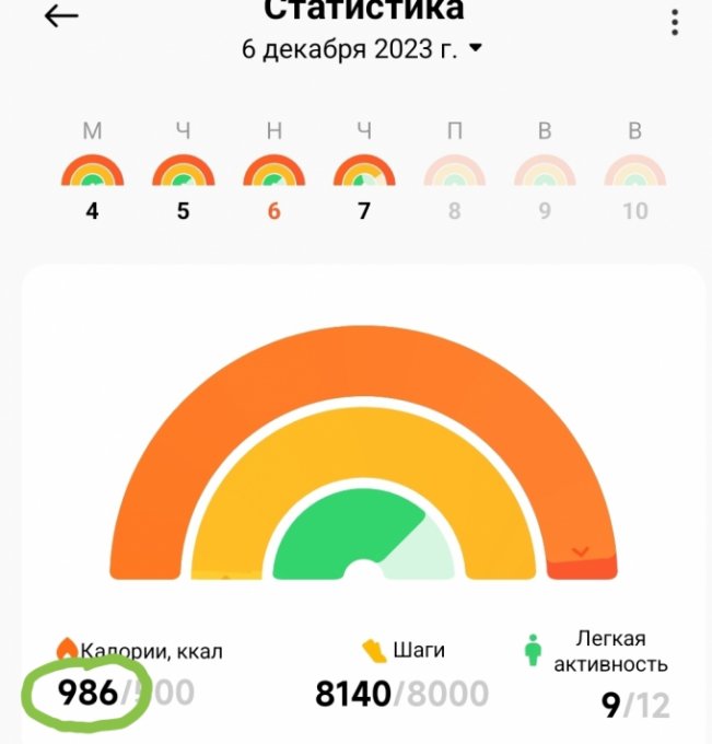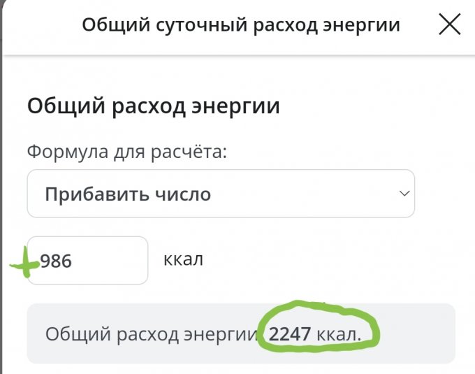 Суточные энергозатраты вчера=ОО+986=2.247ккал