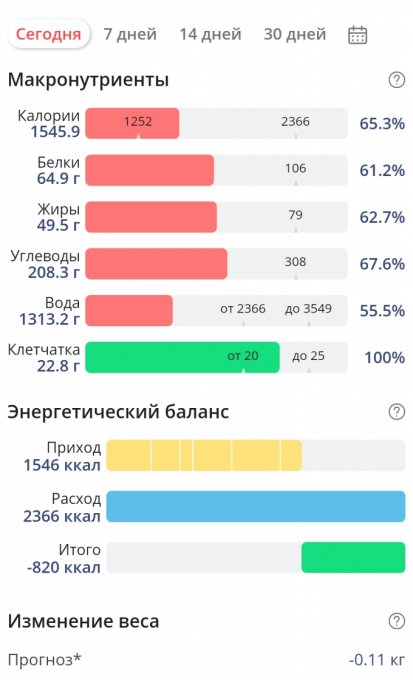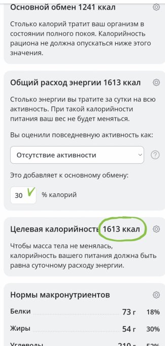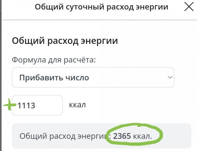 Калорийность поддержания на сегодня ОО+1.113=2.365ккал