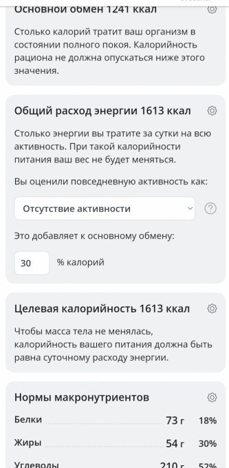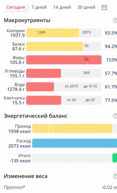 Чтобы увидеть отчеты по питанию и график веса, необходимо войти.