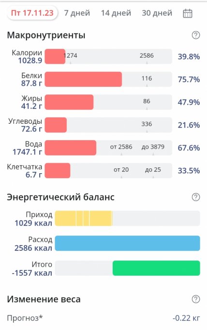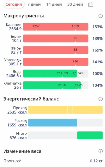 | Итого за день | 2070 | 1028 | 87 | 41 | 72 |