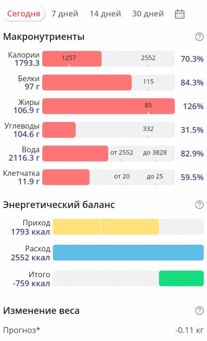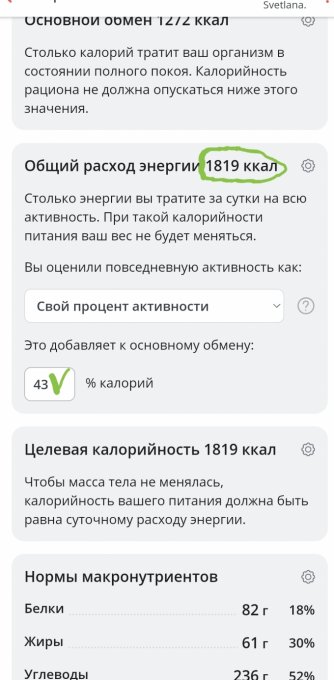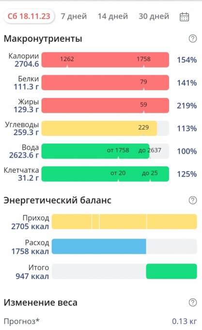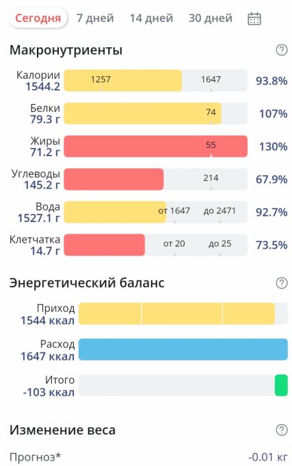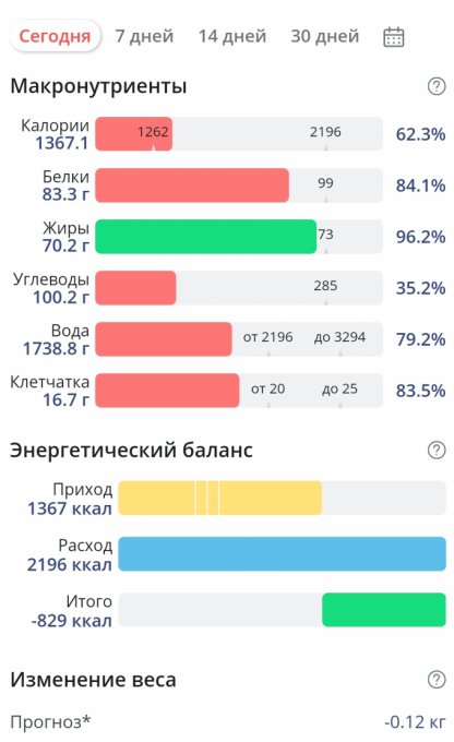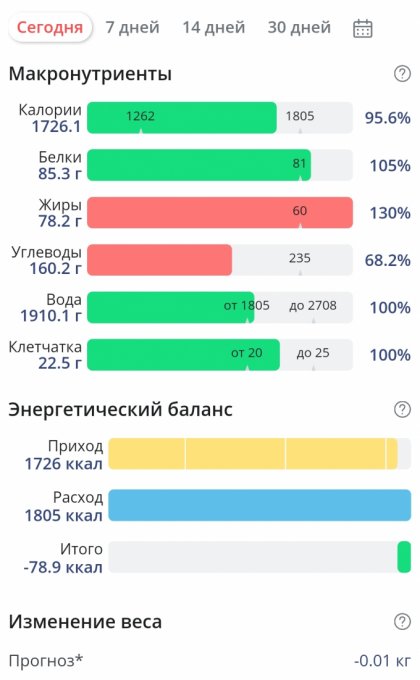 | Итого за день | 2030 | 1367 | 83 | 70 | 100 |