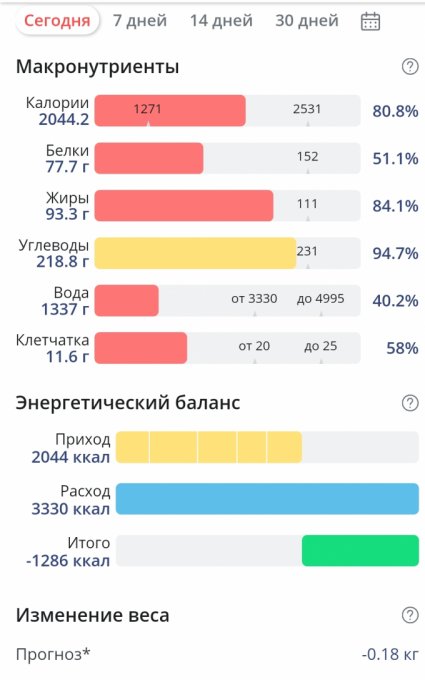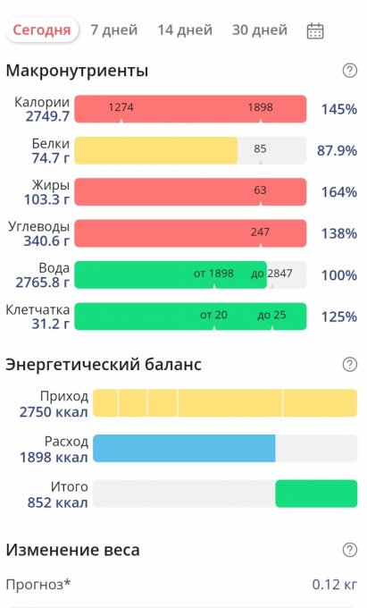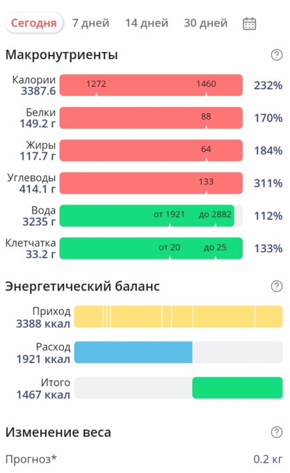 | Итого за день | 3524 | 2388 | 133 | 81 | 275 |