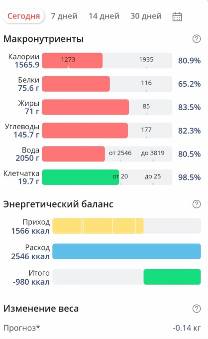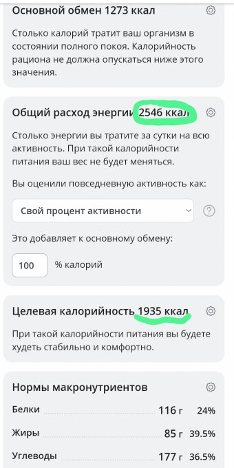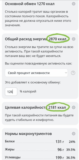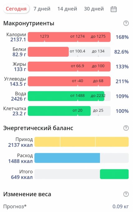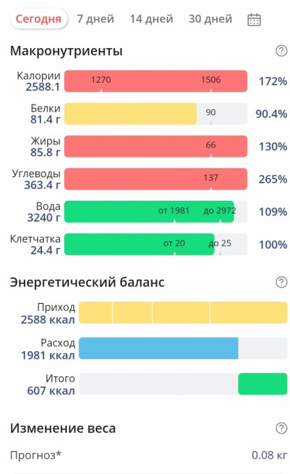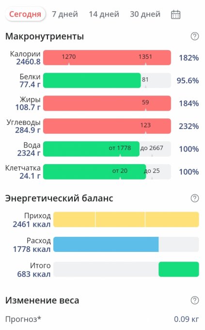 | Итого за день | 1885 | 2225 | 91 | 91 | 244 |