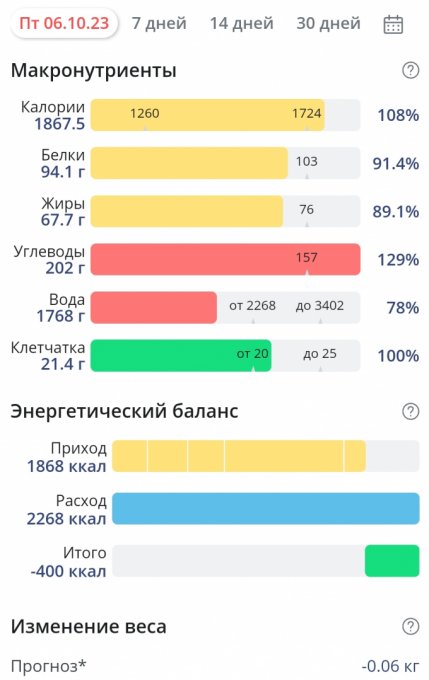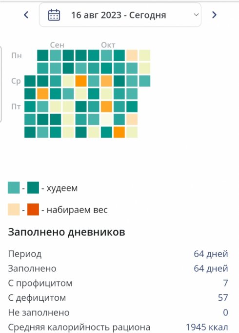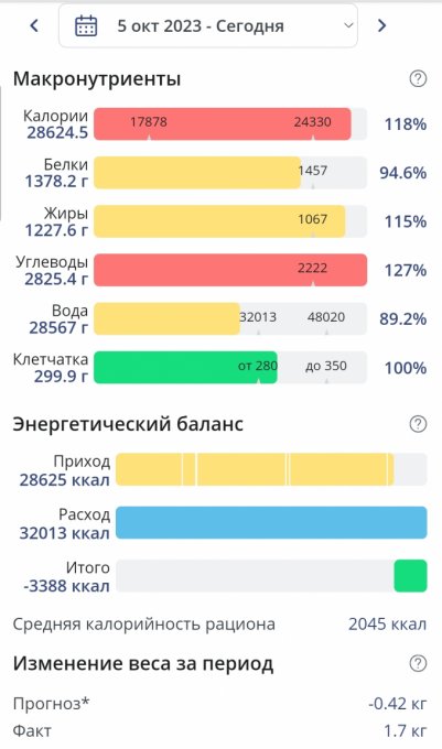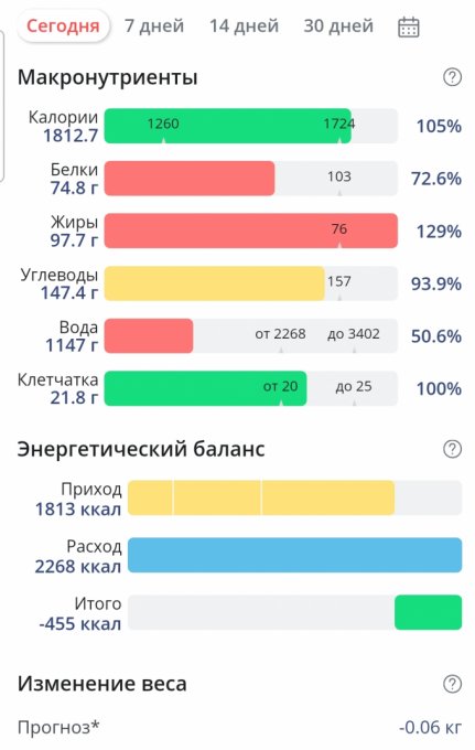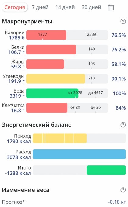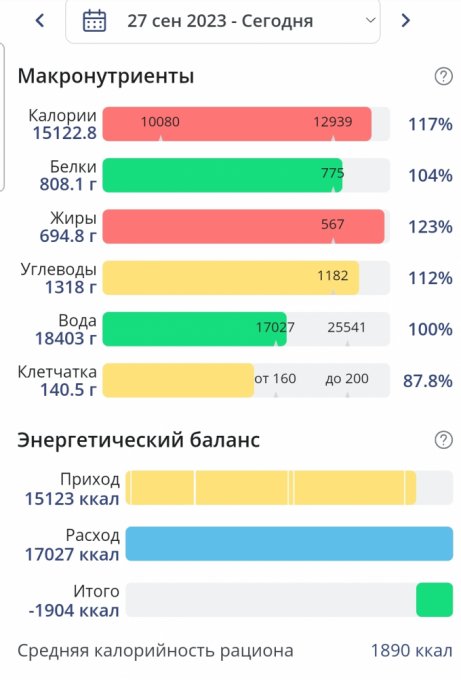 | Итого за день | 2412 | 1728 | 59 | 64 | 225 |