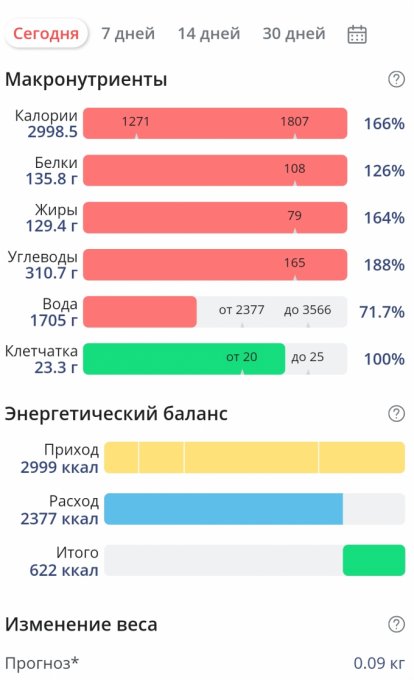 | Итого за день | 3475 | 1940 | 84 | 84 | 199 |