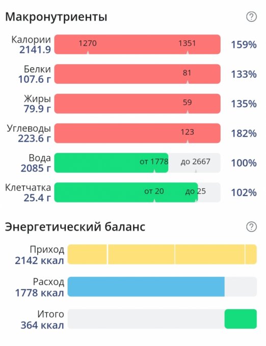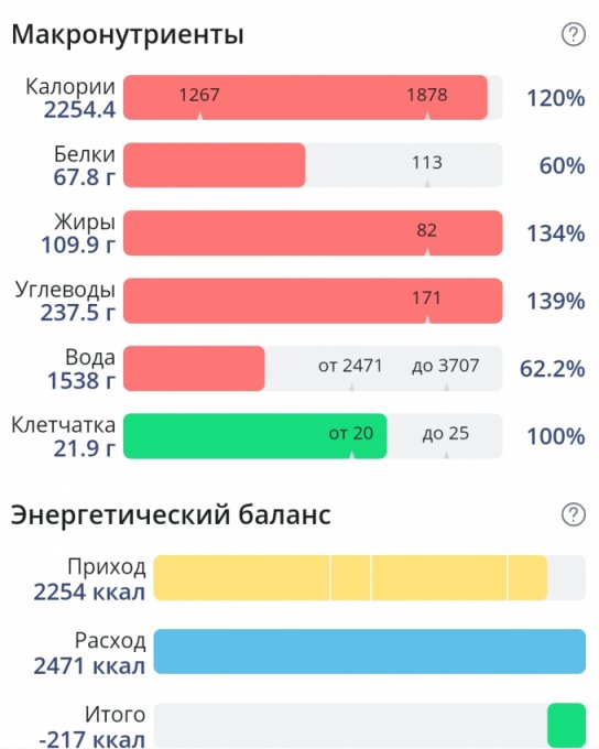 | Итого за день | 3602 | 2028 | 138 | 78 | 186 |
