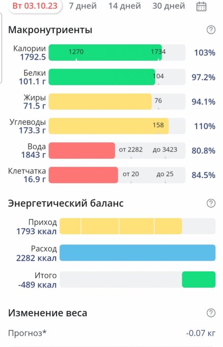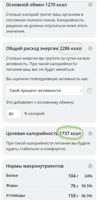 | Итого за день | 2240 | 1792 | 101 | 71 | 173 |