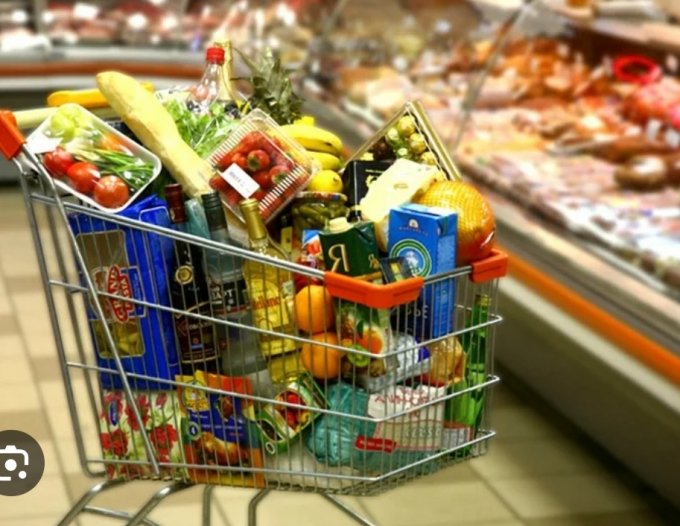 Люди делают покупки в супермаркетах и в других магазинах.