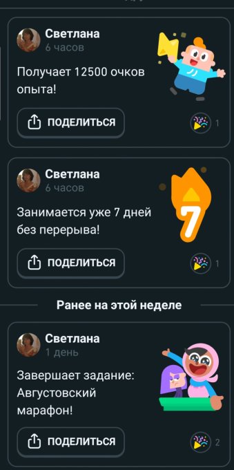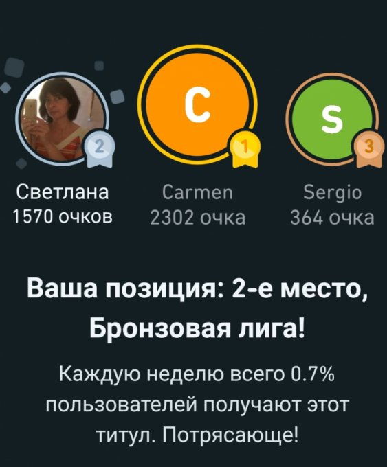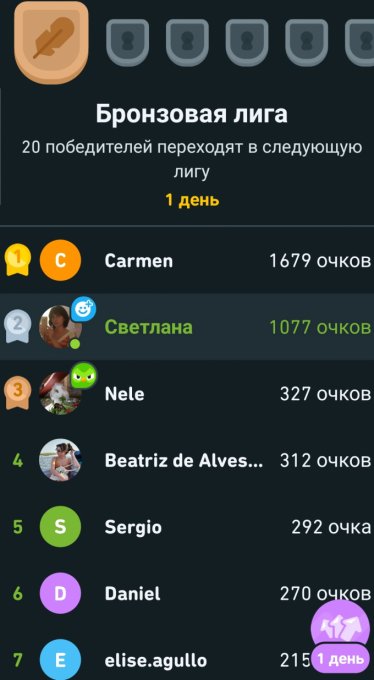 Неделю занимаюсь в приложении Диолинго. Тут много игровых соревновательных моментов - это добавляет интереса.