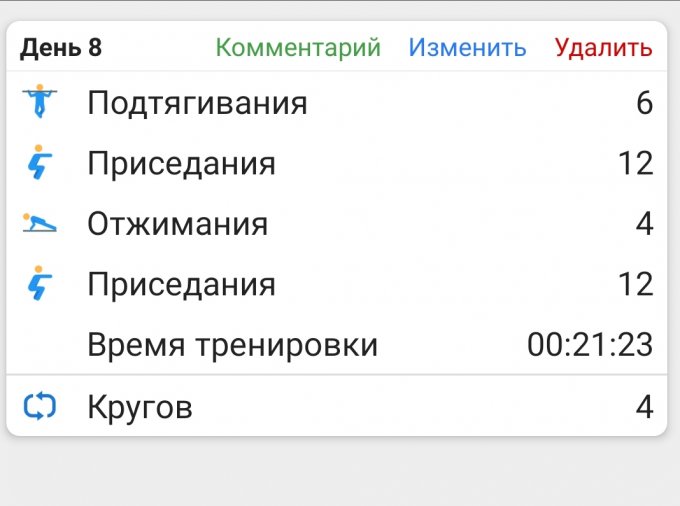 Подтягивания у меня облегчённые, поэтому считаю 2 за 1)