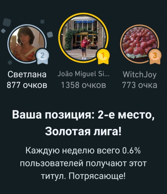 Сейчас на втором месте. Интересно, получится ли пройти в первое?) Разрыв очень уж большой и быстро увеличивается🙃