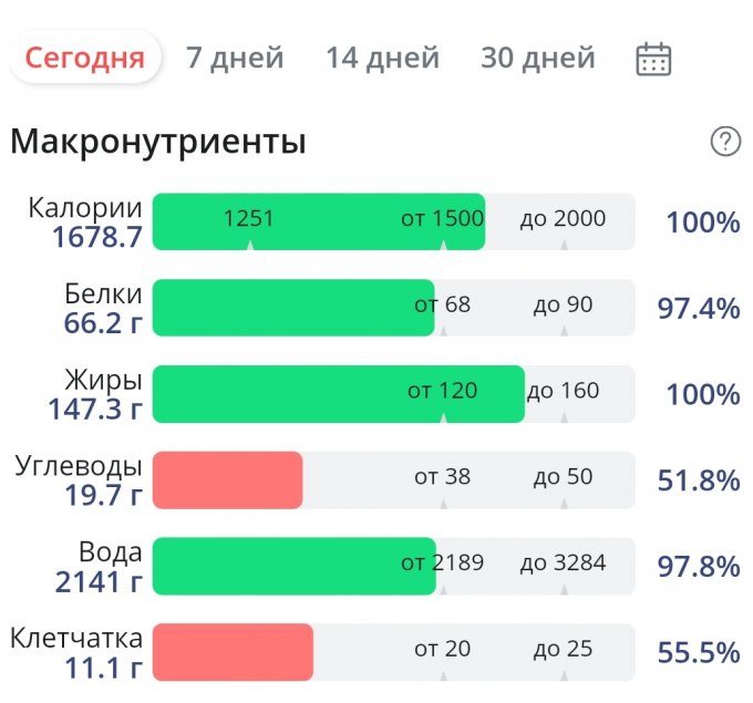 | Итого за день | 2030 | 1600 | 65 | 135 | 26 |