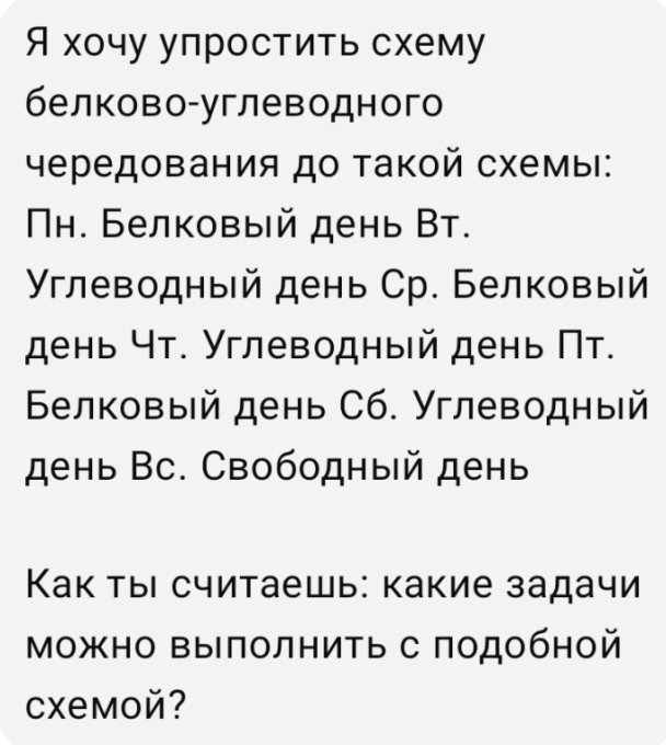 Такая схема — почти как зож-ритуал, а не строгая диета.
