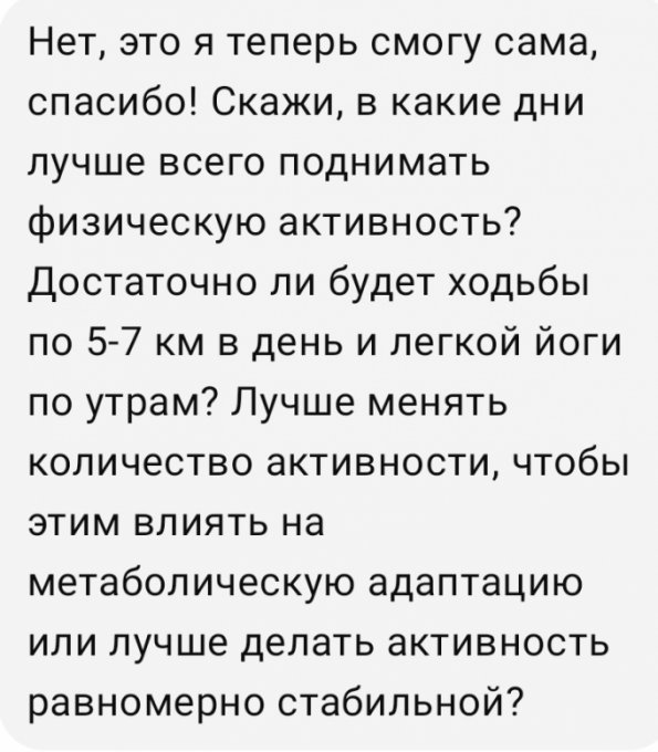 Пн Белковый 🧘♀️ Лёгкая йога + 🚶 5–7 км ходьбы Активизировать