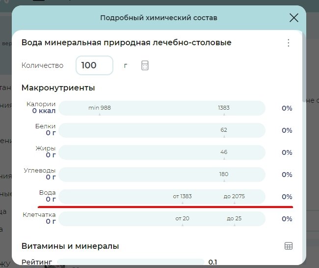 Если вы воду сами добавляли, то надо было занести количество воды, а у вас там 0.Или, как вы написали, внесите из основной базы.
