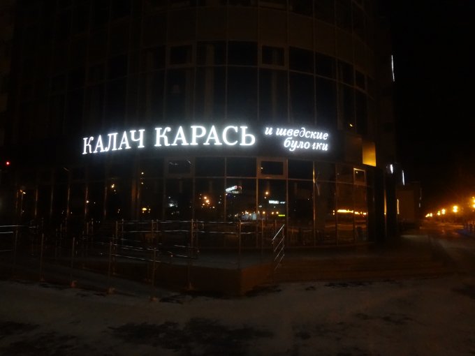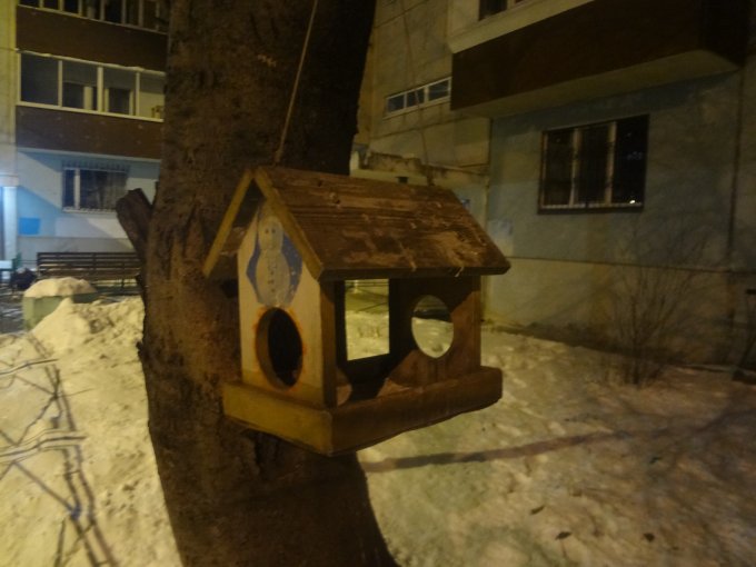 7 тысяч шагов физической активности до завтрака. Сегодня нашла удивительные дома с горящими номерами подъездов, подумала : -ого! Как классно придумали! Скорая, такси, да и хоть кто легко найдут нужный подъезд, прямо супер идея! Ещё бы номера домов так крупно писались и освещались, вот номер этого жома в темноте не увидела. Удивило название ресторана в котором ни разу не была и шведских булочек там ни разу ни покупала=)) Опять нашла новые кормушки для птиц, Какие оказывается люди у нас  заботливые, у многих домов висят кормушки .