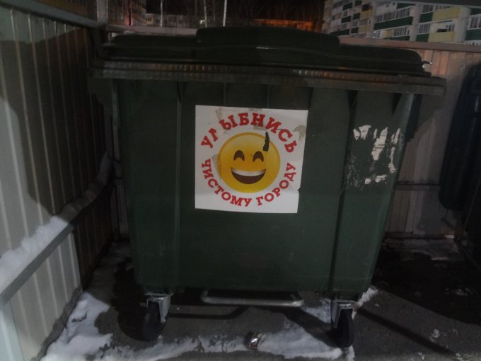 7 тысяч шагов физической активности до завтрака. На улице мороз нос и щёки щиплет ой-ё-ёй! Прошла новым маршрутом, увидела весёлые мусорные баки, лозунг понравился! "Улыбнись, чистому городу!"=))