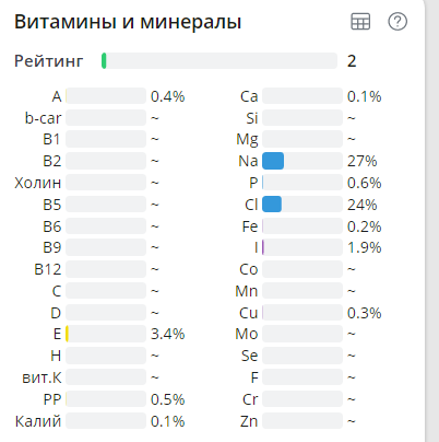 Мой Здоровый Рацион нашёл следы витаминов А, Е, РР, из минералов  натрий  с  хлором, Из жирных кислот в солёном сале почему то  МЗР показывает только две.НЖК и ПНЖК  в 30 гр. солёного сала :