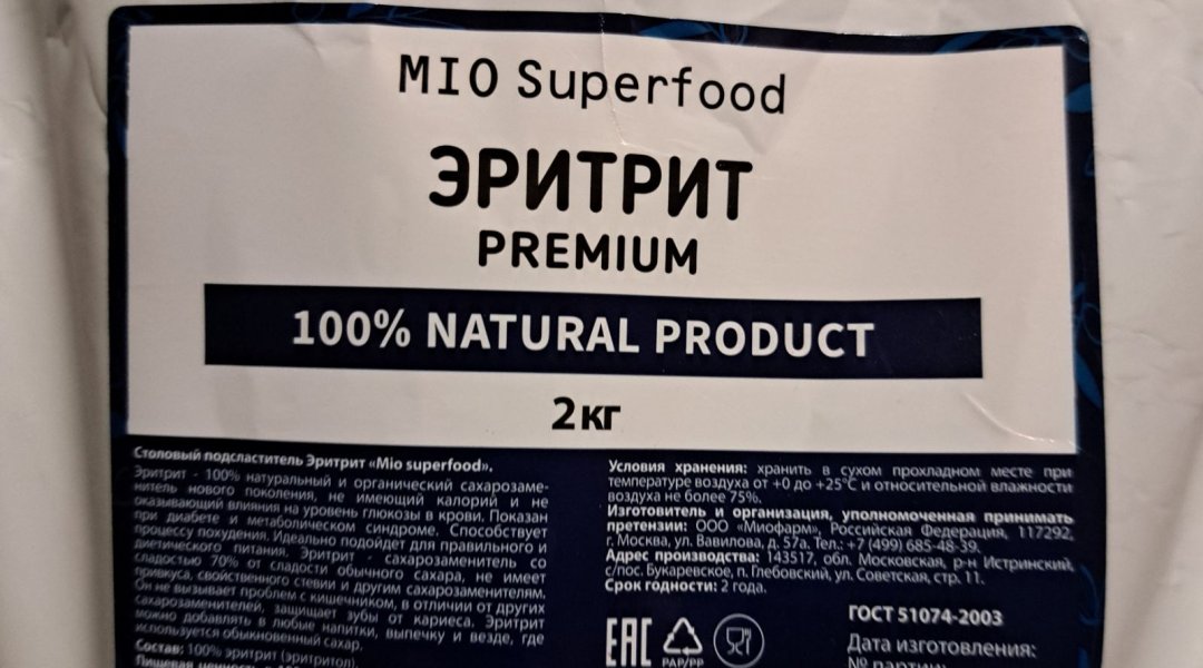 | Заменитель сахара Эритрит и стевия | 10 г |