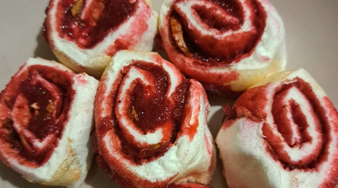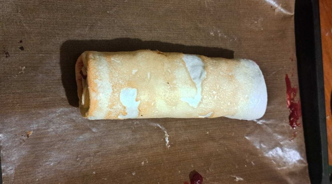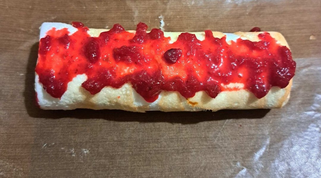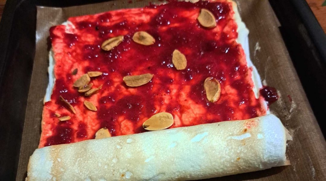 | Рулет с брусничным вареньем и лепестками миндаля |