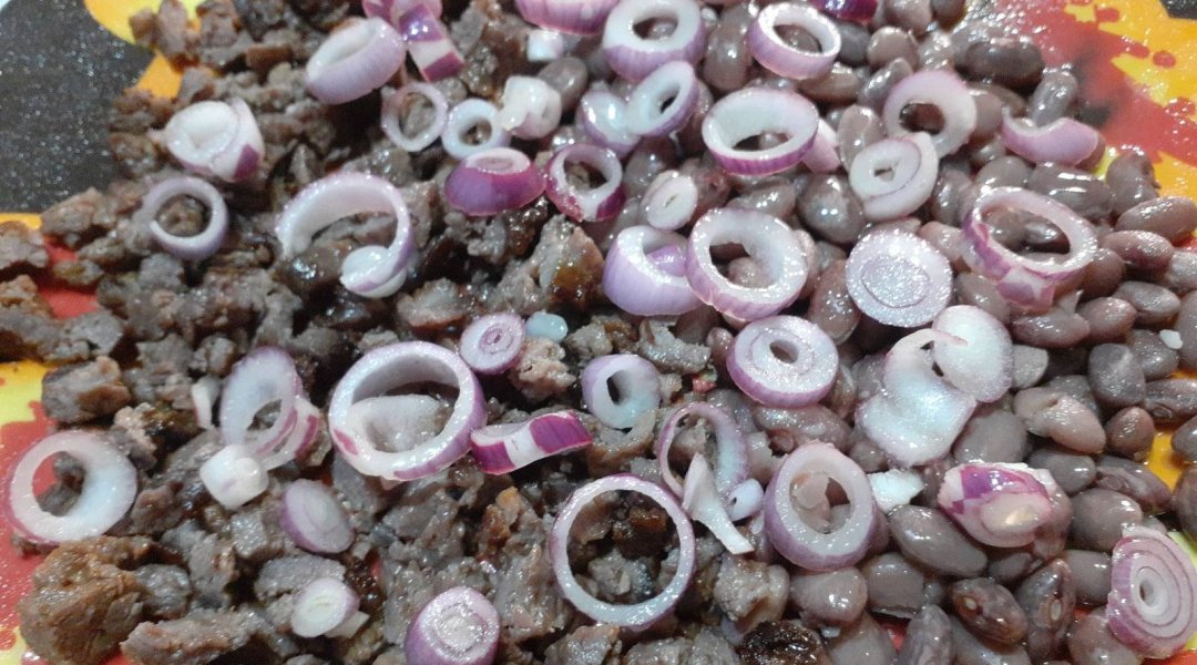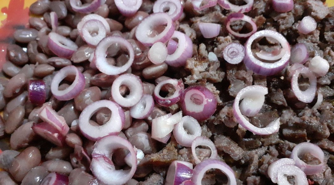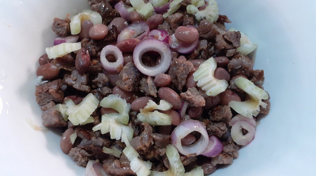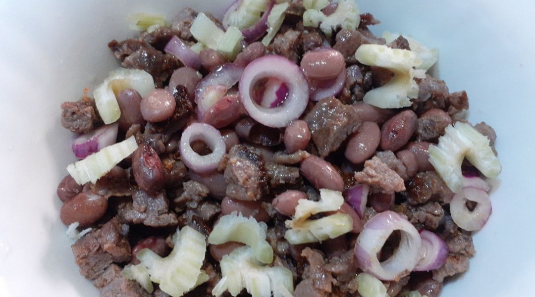 | Салат из говядины и фасоли с красным луком и сельдереем |